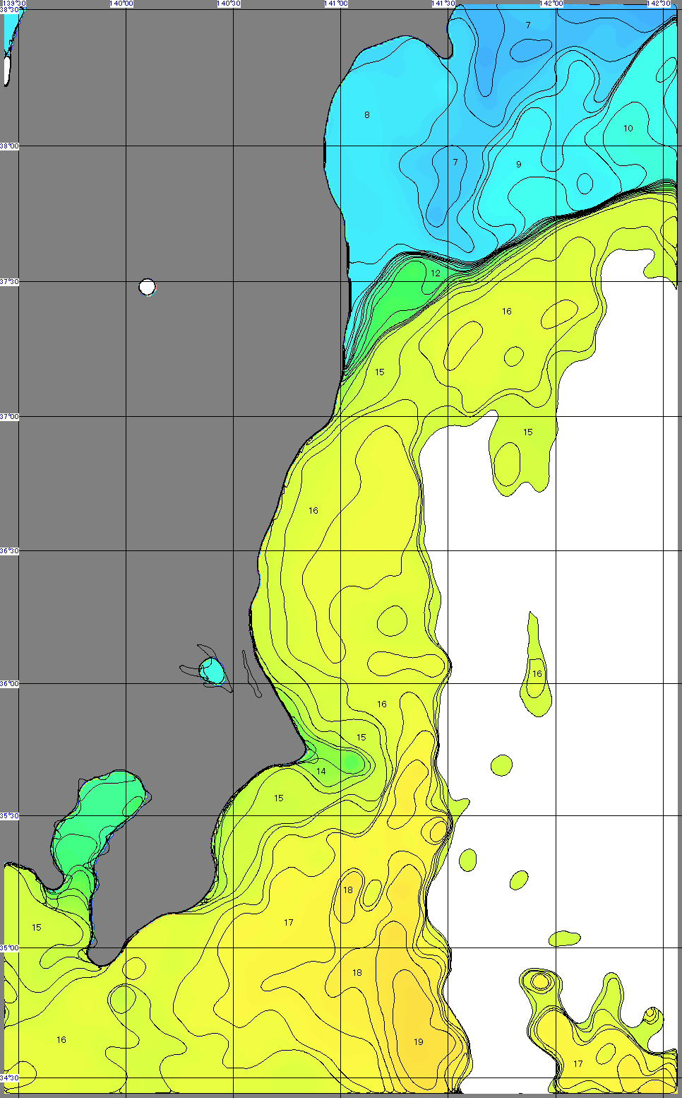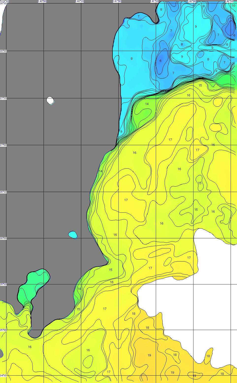 ¦‰æ‘œ‚ª–³‚¢ŠCˆæ‚ÍA‰_‚Ì‚½‚ߌfڂ𒆎~‚µ‚Ä‚¢‚Ü‚·B ¦í”Ö‰ˆŠÝŠCˆæ‚Ì…‰·•\ަ‚ɂ‚¢‚Äià–¾j AMSRi‚«”\ƒ}ƒCƒNƒ”g•úŽËŒvj•\–Ê…‰·‰æ‘œ i“Œ–k‰«‡ŠCˆæj